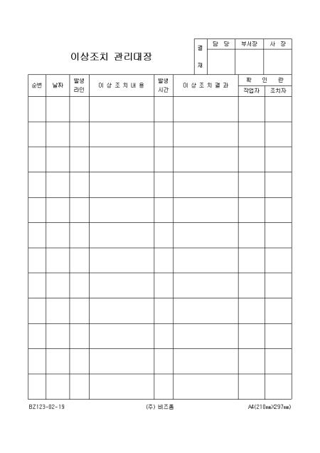 이상조치관리대장