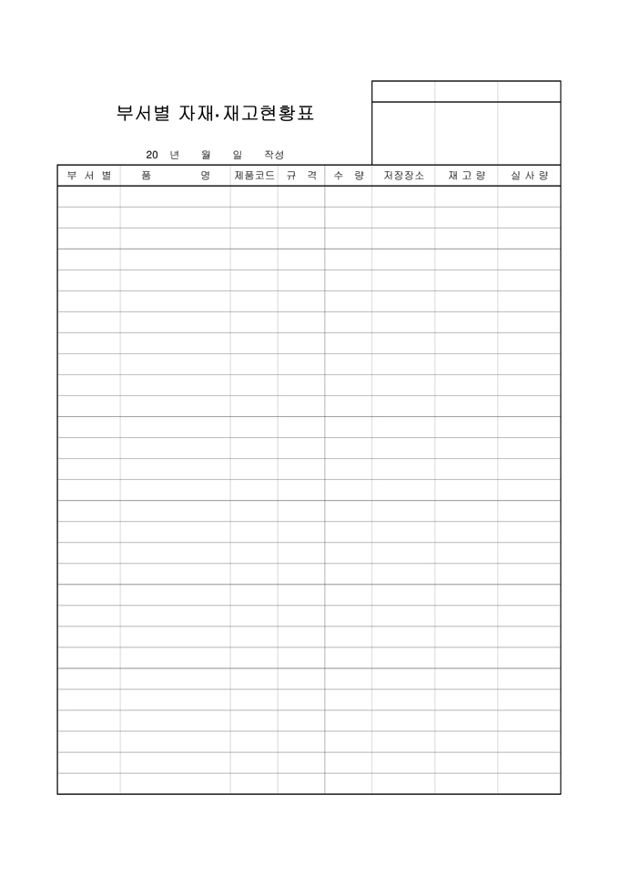 9,000원/월부서별 자재 재고현황표