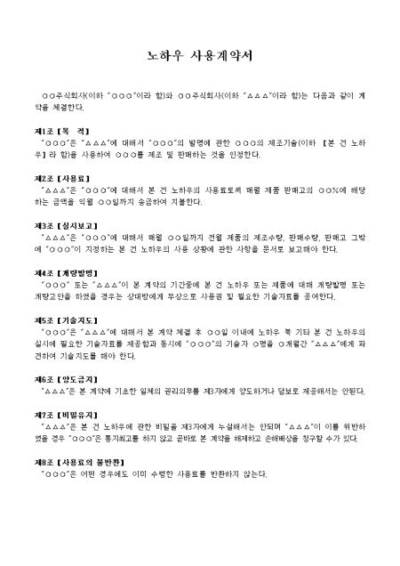 갑은 을에 대해서 제품의 발명에 관한 제조기술을 사용하여 제조 및 판매하는 것을 인정한다는 내용의 노하우 사용계약서입니다.
