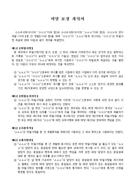 주식회사간에 연구개발을 위해 “갑”이 “을”에게 개시하는 비밀사항 취급에 관해 계약을 체결할 때 사용하는 비밀보장계약서입니다.