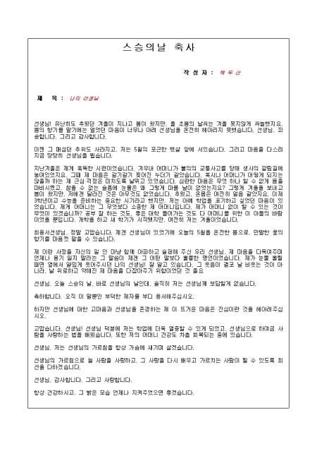 스승의날 축사중 우수작을 선별하여 제작된 서식입니다. 샘플이 포함되어 참고하여 작성할 수 있습니다.