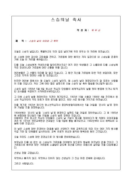 스승의날 축사중 우수작을 선별하여 제작된 서식입니다. 샘플이 포함되어 참고하여 작성할 수 있습니다.