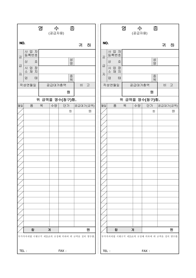 9,000원/월부가가치세법 시행규칙 제25조의 규정에 의하여 금액에 대한 영수를 확인할 때 간편하게 작성하는 간이영수증입니다. 공급자의 사업자등록번호, 상호, 사업장, 업태 등과 공급대가총액 등을 작성할 수 있습니다.