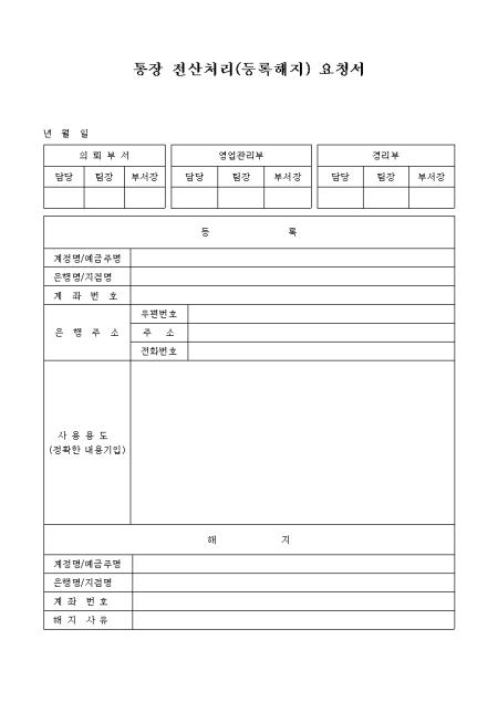 통장 전산처리(등록해지)요청서