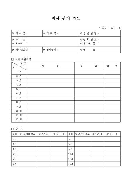 지사 지원내역,매출내역,위치 등을 기록하는 지사관리카드입니다.