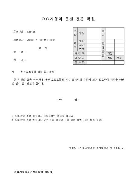 운전학원에서 작성한 공문예제입니다.