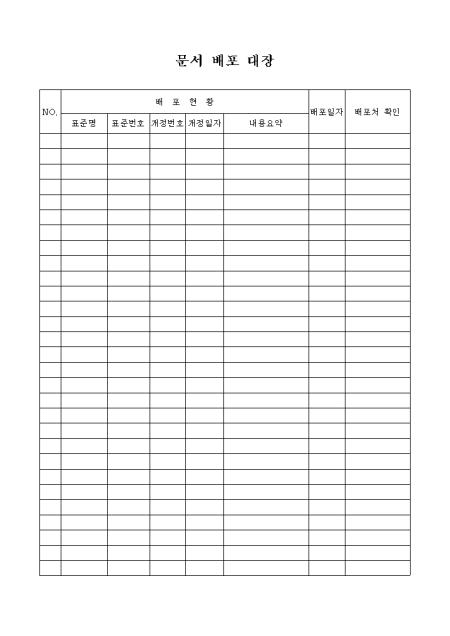 배포현황,배포일자,배포처를 기록하는 문서배포대장입니다.