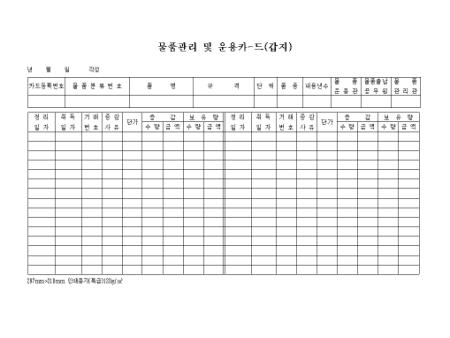 물품 내역,증감,보유량등을 기록하는 물품관리 및 운용카드입니다.