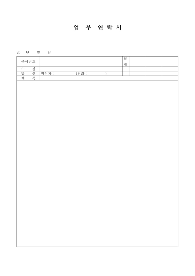 9,000원/월문서번호,수신,발신,제목,내용을 기록하는 업무연락서입니다.