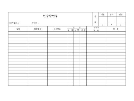 일자별 날인내용,문서번호,신청부서를 기록하는 인장날인부입니다.