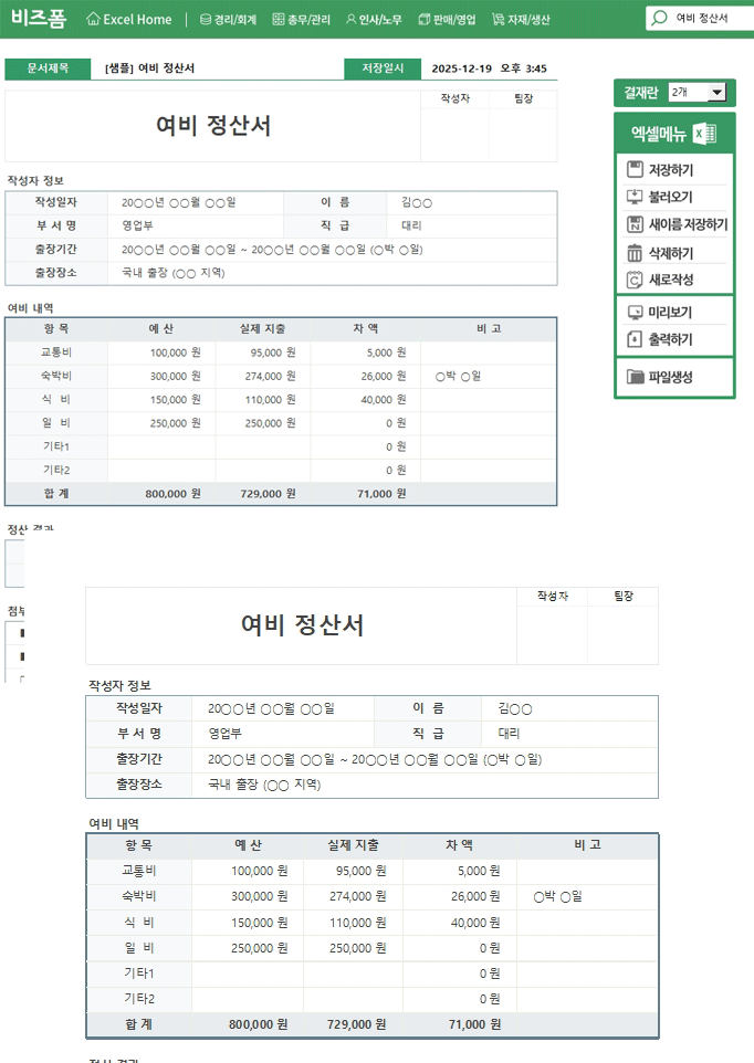 여비 정산서