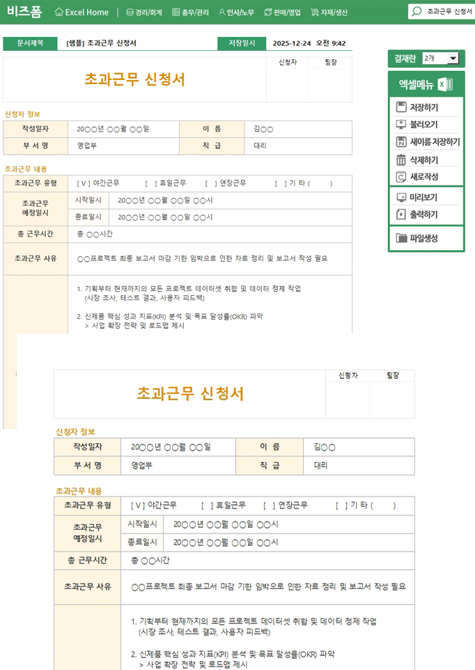 초과근무 신청서