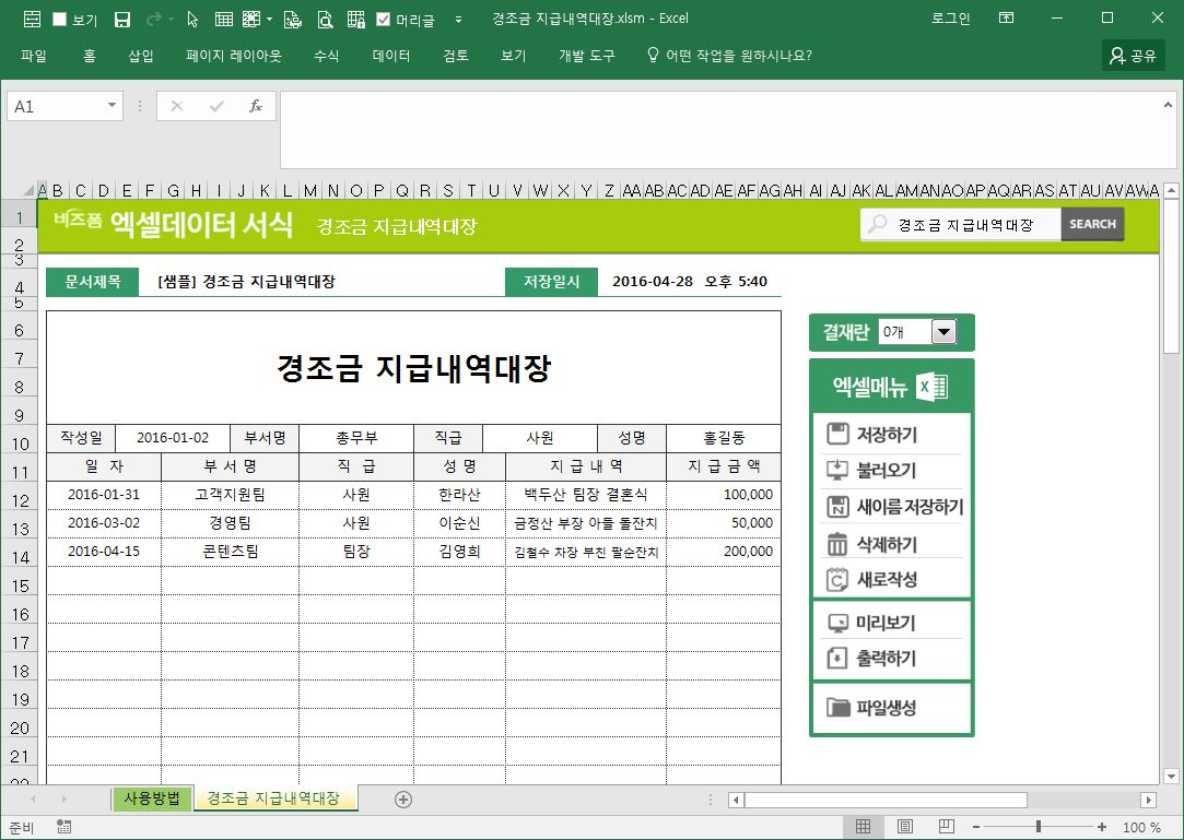 경조금 지급내역대장
