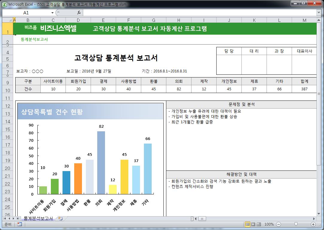 고객상담 통계분석 보고서 자동계산 프로그램