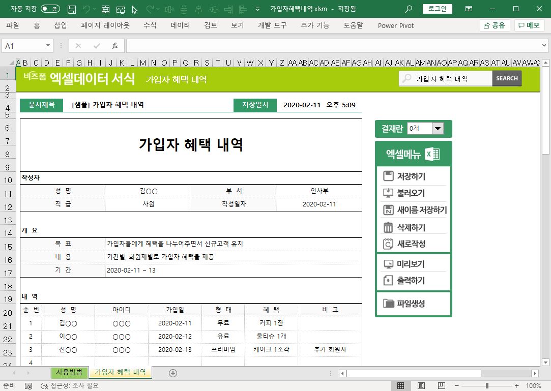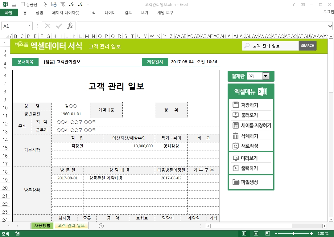 고객관리 업무자동화 프로그램 ver 1.0(고객관리카드)