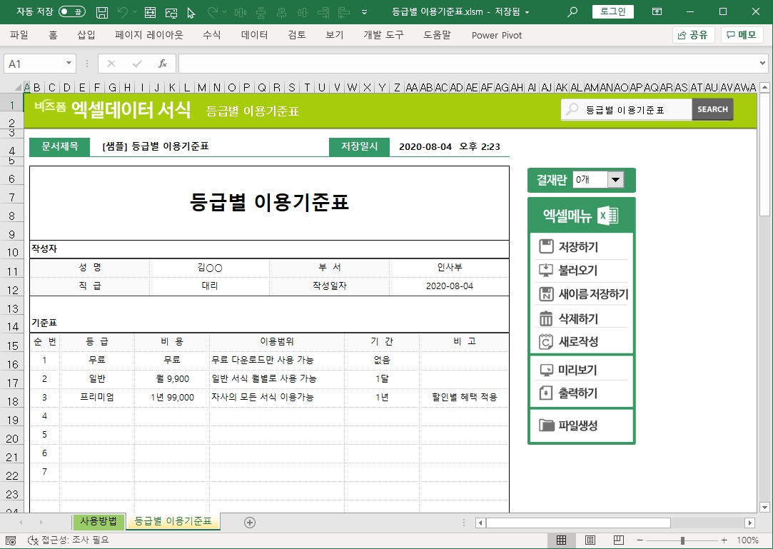 등급별 이용기준표