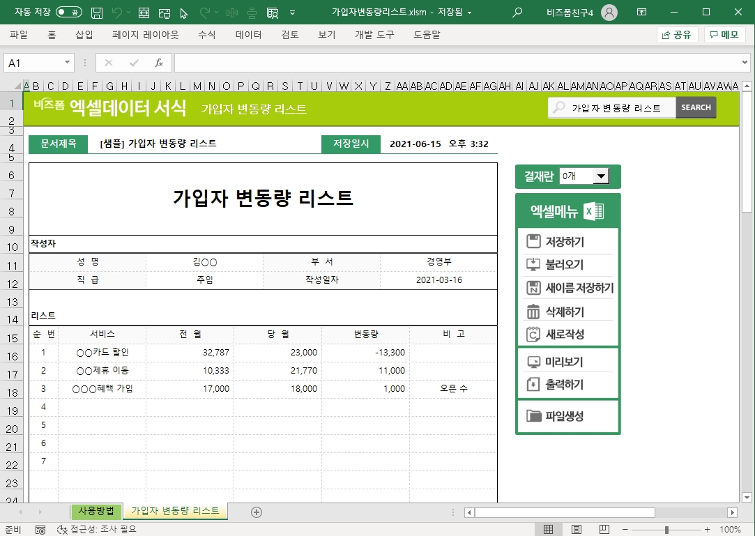 가입자 변동량 리스트