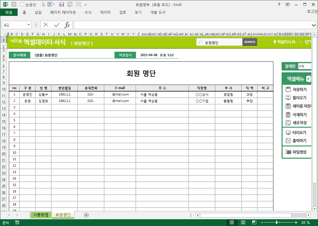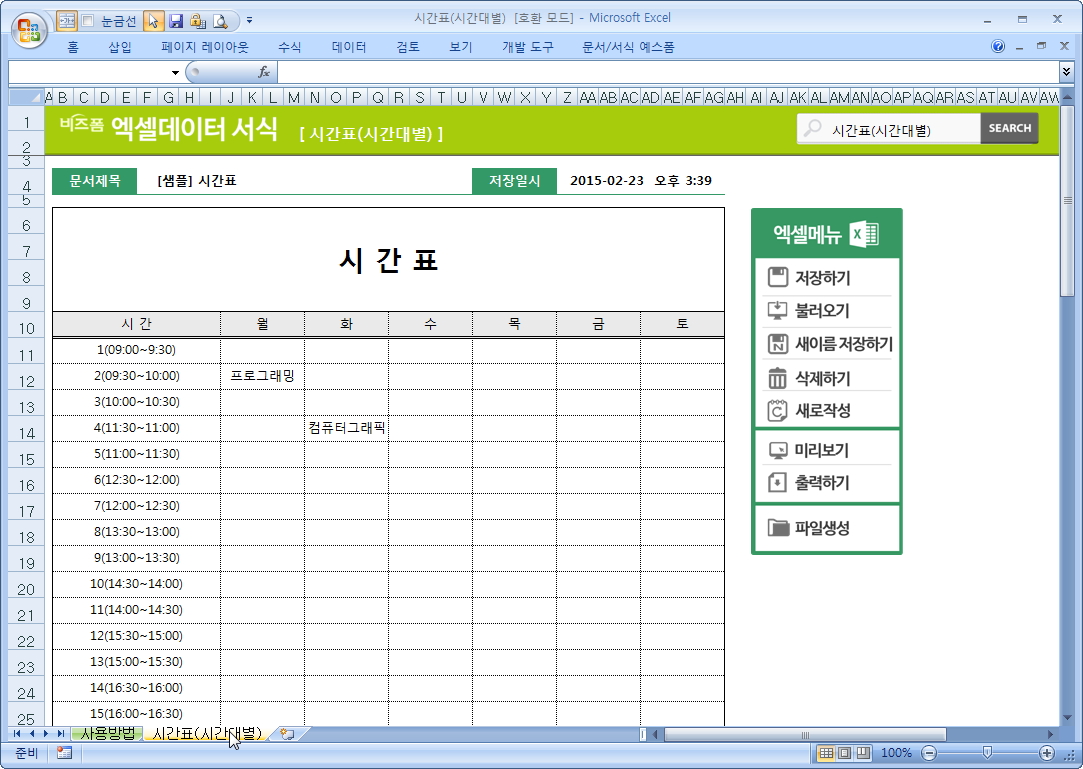 스케쥴관리 업무자동화 프로그램(엑셀자동달력, 영업달력)