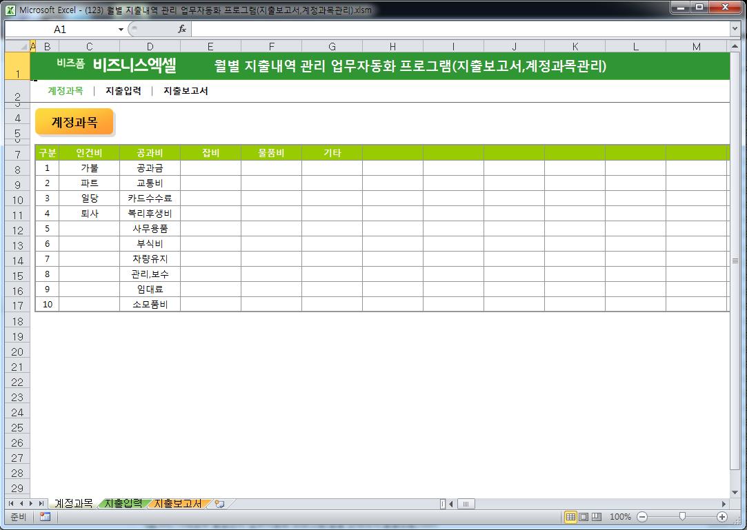 월별 지출내역 관리 업무자동화 프로그램(지출보고서,계정과목관리)
